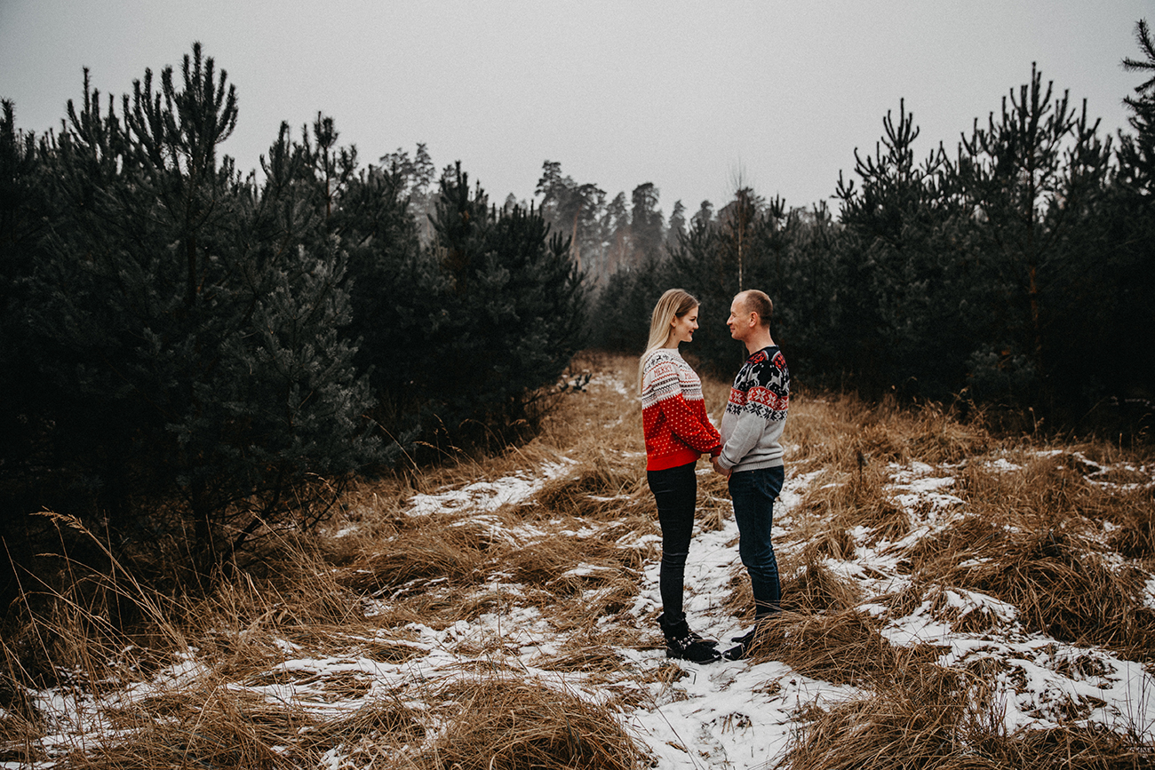 Pojechaliśmy do lasu, poszukać drzew, świerków i klimatycznych miejsc. Była herbatka w termosie i cudowna atmosfera. Bo z Mileną i Łukaszem znam się nie od dzisiaj, a w zasadzie to już dobrych kilka lat. Cieszę się, że to ja mogłam uwiecznić ich miłość na zdjęciach.
